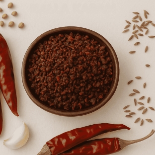 This is Andhra’s boldest karam! Made with sun-dried bitter gourd slices, red chillies, and roasted lentils, Kakarakaya Karam offers a distinctive blend of bitterness and spice. It’s ideal for health-conscious foodies who want flavor without compromise—serve with ghee rice or sprinkle over curd rice for a punchy twist.
