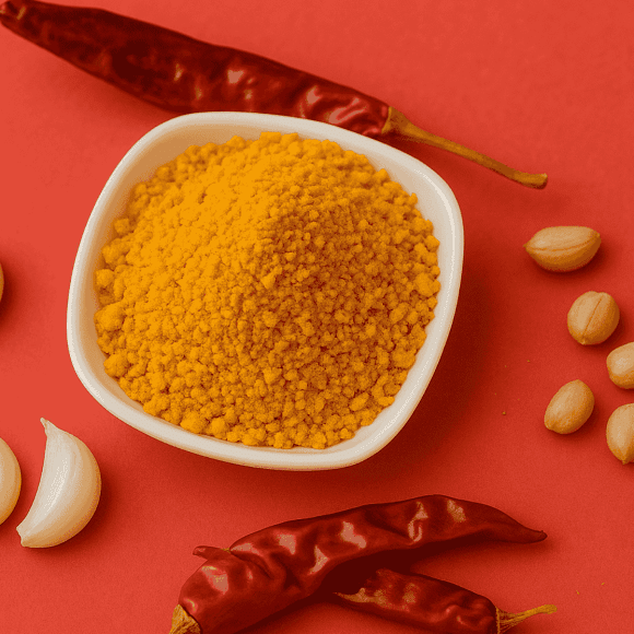 Creamy, crunchy, and packed with flavor, our Palli Karam is made from dry-roasted peanuts blended with red chilies, garlic, and a hint of cumin. It’s a protein-rich, energizing powder that adds instant flavor and nutrition to any meal. The natural oils from the peanuts give it a luscious texture, while the spices bring warmth and zing. Traditionally enjoyed with hot rice and ghee, Palli Karam is also perfect with idlis, dosas, or as a topping for boiled vegetables and salads. Its nutty charm and spicy kick make it a household favorite for all age groups.