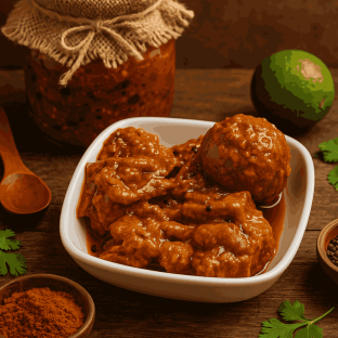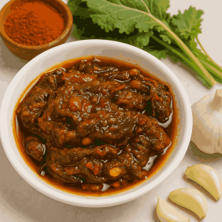 Pudina, or mint leaves, are blended with spices and preserved to create a refreshing and spicy pickle. Its cool flavor with a spicy kick adds a unique taste to your meals.
